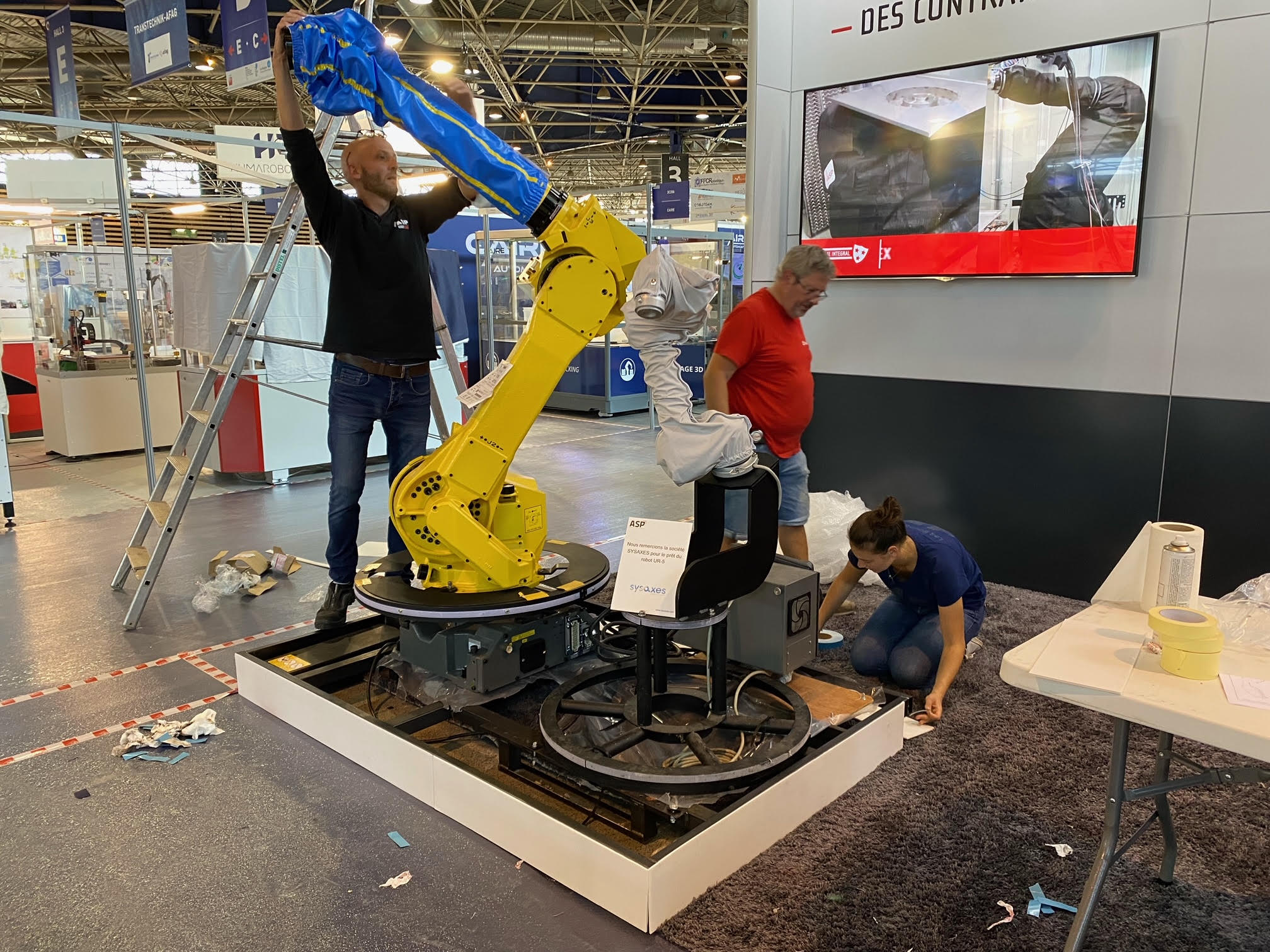 Merci à nos partenaires Fanuc qui nous a prêté le robot M-710 et Sysaxe qui nous a prêté le robot UR-5. Ce fut un plaisir également de croiser à nouveau les nombreux visiteurs « en présentiel ».