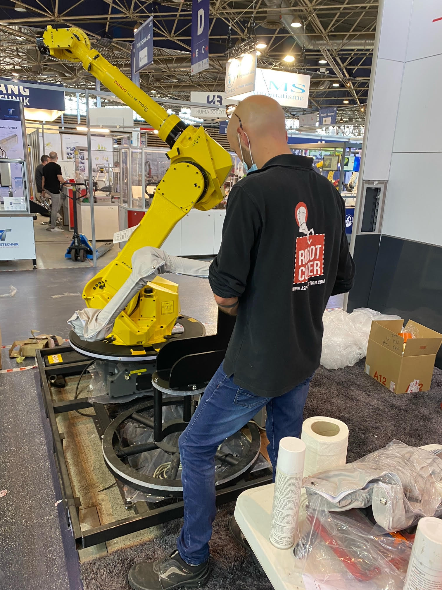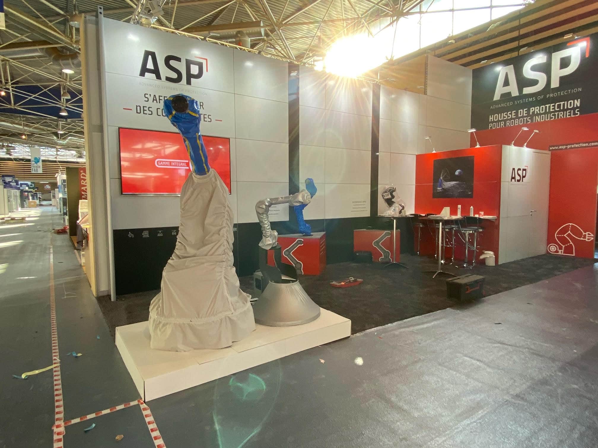 Le Salon Global Industrie se tenait à Lyon la semaine dernière. ASP a eu l’occasion d’y présenter ses tous derniers modèles de housses de protection, développés à notre siège en Lorraine. La housse One Seam a fait sensation par la qualité des tissus et sa souplesse qui lui permettent de suivre parfaitement les mouvements du robot qu’elle protège. Présentée en avant-première au Salon, elle protège efficacement les Corobots.